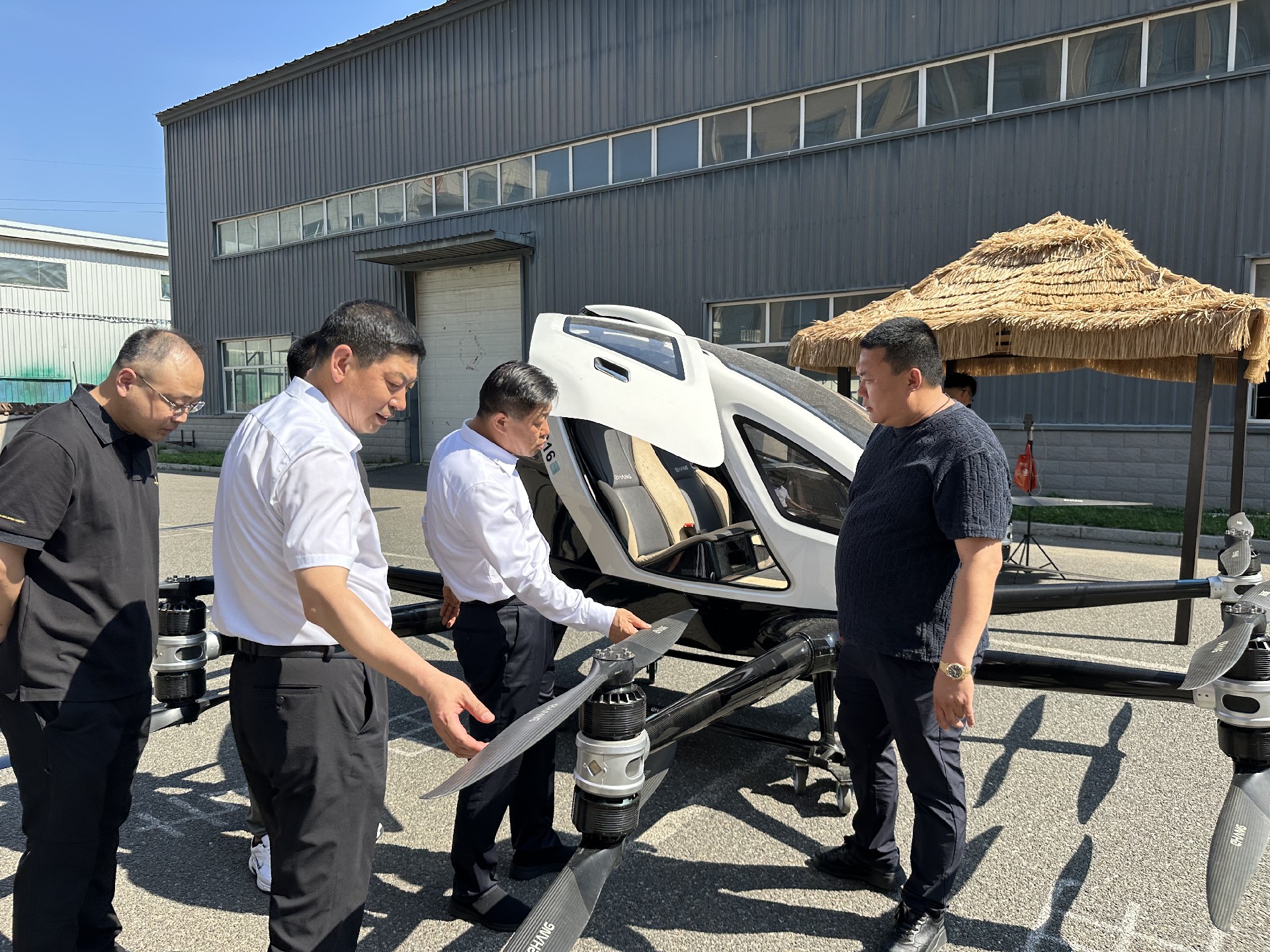 参观了无人机的飞行表演以及EVTOL大型电动载人垂直起降飞行器,通过飞行表演以及一系列的讲解让各位领导对当下无人机发展有进一步的了解。